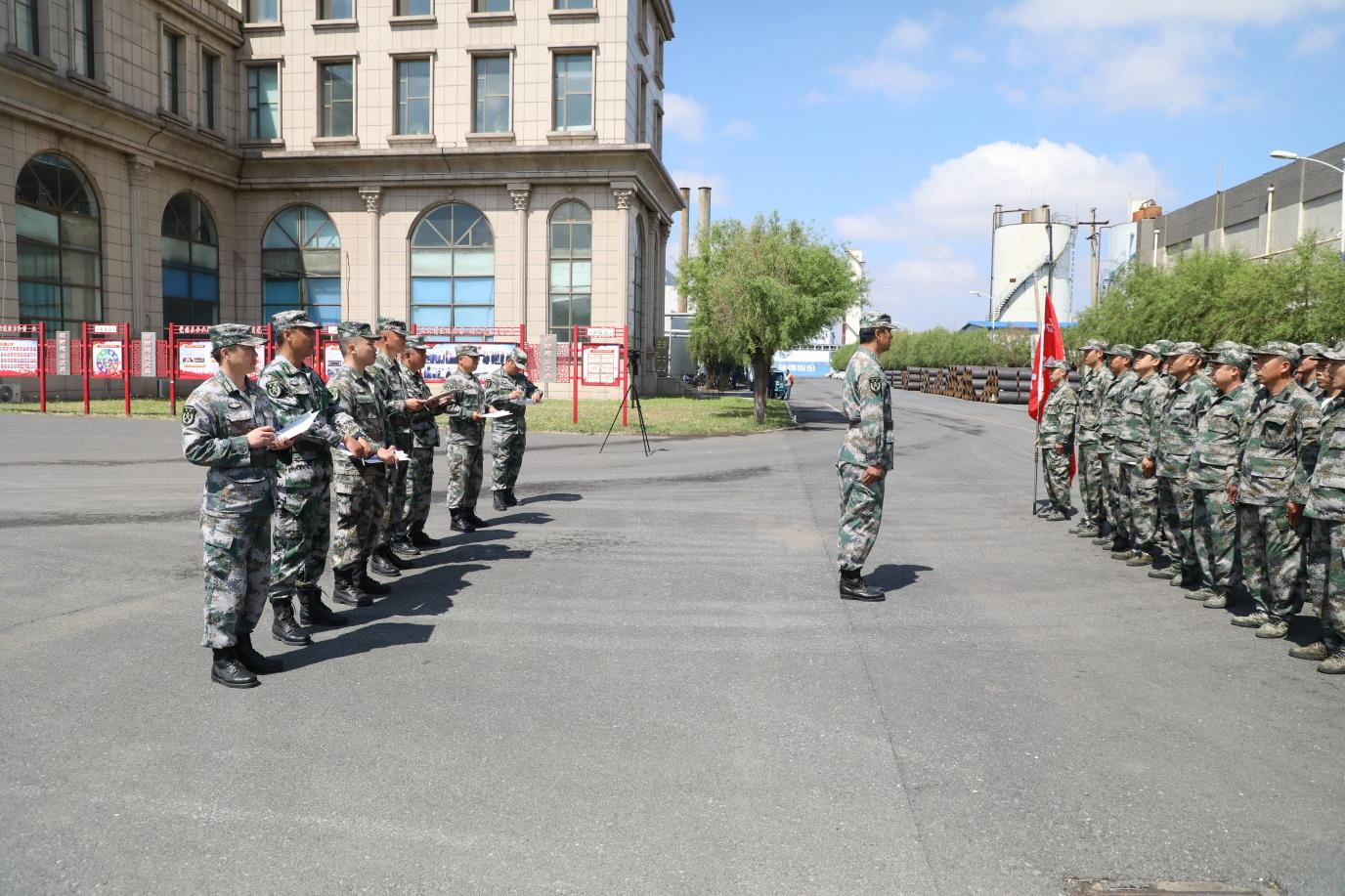 為了檢驗(yàn)軍訓(xùn)效果,對(duì)41支方隊(duì)進(jìn)行了考核,每支方隊(duì)邁著鏗鏘有力步伐,喊著自行編寫的號(hào)子,雄赳赳氣昂昂的走到考核官面前,將訓(xùn)練科目一一展現(xiàn),充分展示了員工良好的精神面貌,及滿滿的集體榮譽(yù)感。